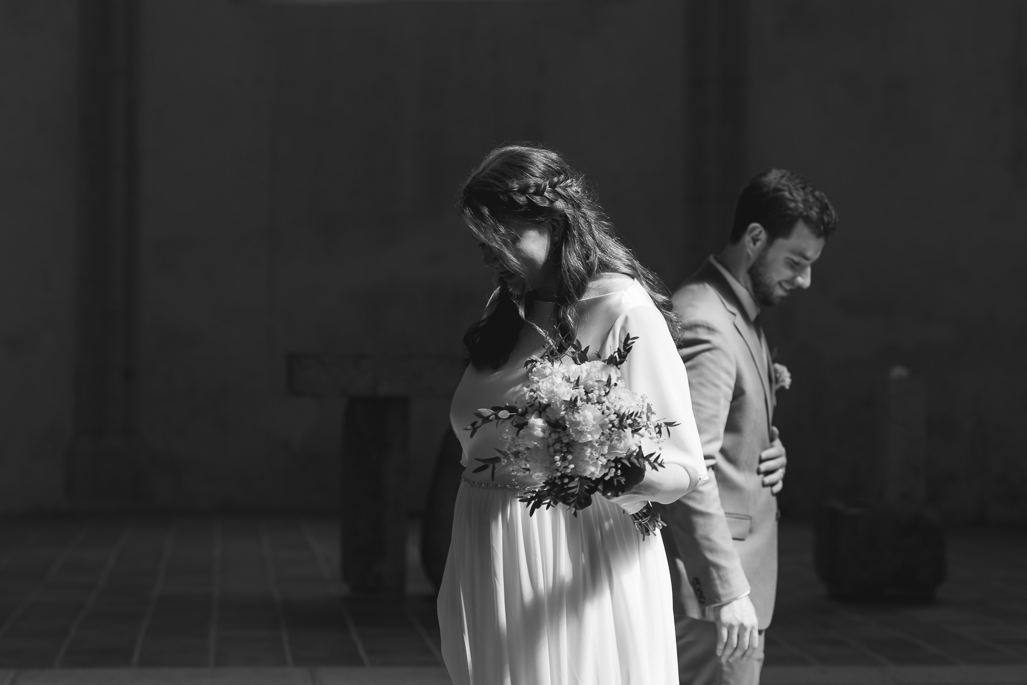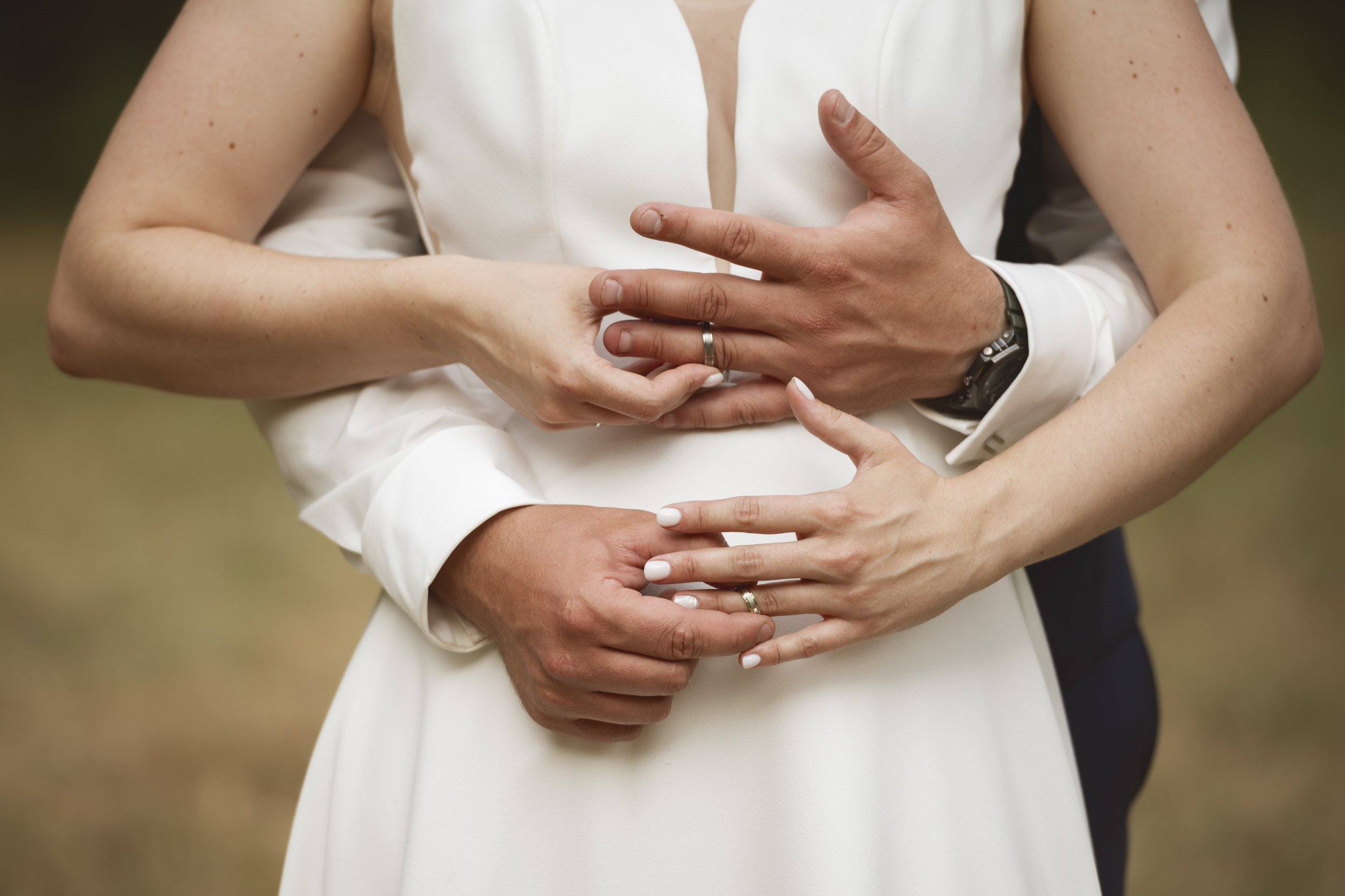Nevsiljiva, intimna in estetska poročna fotografija v dokumentarnem slogu, ustvarjena s subtilnim umetniškim pristopom in diskretnostjo.
